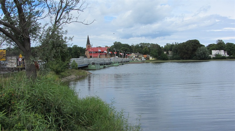 W tym miejscu znajdował się najdłuższy most pontonowy w Polsce o długości 181,57 m. Jest częścią byłego wojskowego mostu w Kiezmarku przeniesionego tu w latach 70. Obecna nazwa to Most 100-lecia Niepodległości Rzeczypospolitej (również Most 100-lecia Odzyskania Niepodległości).