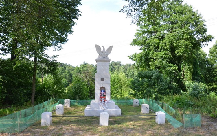 Przed wojną we wnęce pomnika znajdowała się figurka Chrystusa. W 1939 r. po wkroczeniu do wioski wojsk sowieckich, z pomnika został strącony orzeł. Po zakończeniu II wojny światowej na pomniku zamiast orła, postawiony został kamienny krzyż. W 2015 r. przeprowadzono renowację pomnika, na którym ponownie ustawiona została kamienna rzeźba orła.