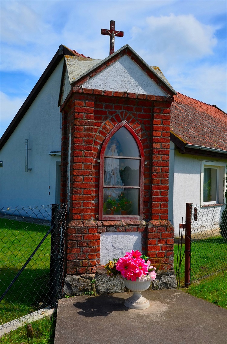 Młodsza z nich znajduje się przy drodze prowadzącej do miejscowości Mawry, murowana z czerwonej cegły licowej i wystawiona na planie kwadratu. Jej front zdobi duża oszklona i ostrołukowa nisza z figurą Matki Bożej, całość nakryta dachem wielospadowym. Druga i chyba zdecydowanie bardziej interesująca kapliczka wybudowana została na początku XIX w. i umiejscowiono ją w pobliżu kościoła. Jest również murowana z czerwonej cegły licowej ale architekturą odwołuje się do form barokowych, posiada rzut wydłużonego prostokąta ze sterczynami w zwieńczeniu.