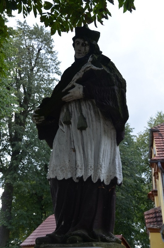 Rzeźba św. Jana Nepomucena stoi nieopodal sanktuarium Matki Boskiej Bolesnej na tzw. Szwedzkiej Górce. Jest to barokowa, kamienna, polichromowana figura postawiona tutaj w 1859 r. Jan Nepomucen stoi na gzymsie prostokątnego cokołu posadowionego na ceglanej podstawie. Postać przedstawiona w lekkim kontrapoście trzyma przy piersi krzyż z figurką ukrzyżowanego Chrystusa.