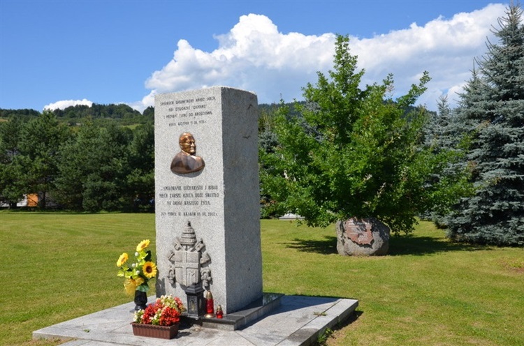 Jest to prostokątny kamienny blok skalny, na którym umieszczone jest popiersie Jana Pawła II oraz herb Stolicy Apostolskiej obowiązujący podczas pontyfikatu Jana Pawła II. Nad popiersiem papieża wyryte zostały słowa kardynała Karola Wojtyły wypowiedziane 11.06.1973 r. podczas wizyty w Krościenku "SPEŁNIŁEM WEWNĘTRZNY NAKAZ SERCA, ABY OTWORZYĆ "OKIENKO" I PRZYBYĆ TUTAJ DO KROŚCIENKA". Kolejny cytat wyryty pomiędzy popiersiem papieża a herbem pochodzi z pielgrzymki papieża do Polski 18.08.2002 r. "...UMIŁOWANIE EUCHARYSTII I BIBLII NIECH ZAWSZE RZUCA BOŻE ŚWIATŁO NA DROGI WASZEGO ŻYCIA".