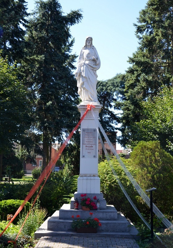 Figura Najświętszego Serca Jezusowego znajduje się na skraju skweru rozdrażewskiego rynku. Rzeźba Jezusa wieńczy wysoki ozdobny cokół ustawiony na pięciostopniowej podstawie. Na frontowej ścianie cokołu przytwierdzona jest tablica fundacyjna z datą 1905 r. Pan Jezus przedstawiony jest w pozycji stojącej w lekkim kontrapoście i sercem na wierzchu oplecionym cierniem.