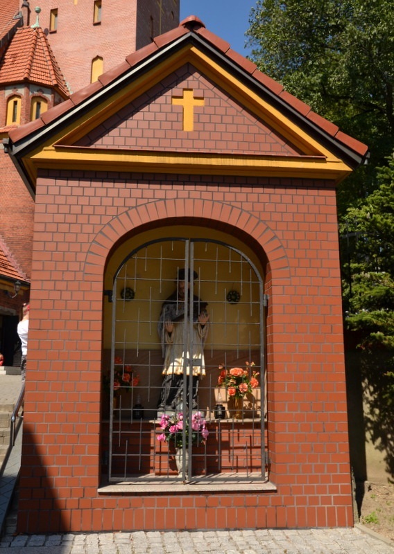 Kapliczka stoi przy schodach prowadzących z ul. Kościelnej na teren kościoła Wniebowzięcia NMP. Ten obiekt małej architektury sakralnej został wzniesiony na przełomie XIX/XX wieku (ostatnio odnowiony).