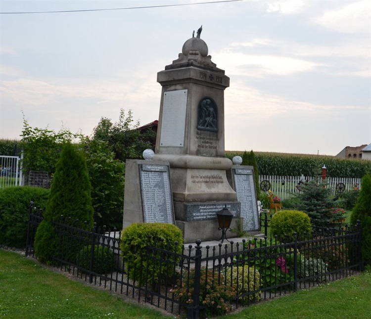 W latach 90 tych XX wieku po obu stronach pomnika umieszczono dwie tablice z nazwiskami poległych mieszkańców wioski podczas II wojny światowej. W tym czasie na postumencie pomnika umieszczona została również tablica z napisem w języku polskim informująca o przeznaczeniu pomnika.