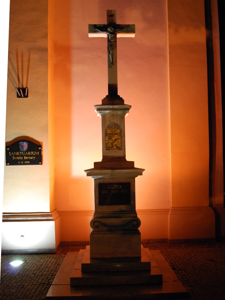 Krzyż pochodzi z 1866 roku, a znajduje się przed wejściem do Sanktuarium Św. Barbary przy ul. 1 Maja .
