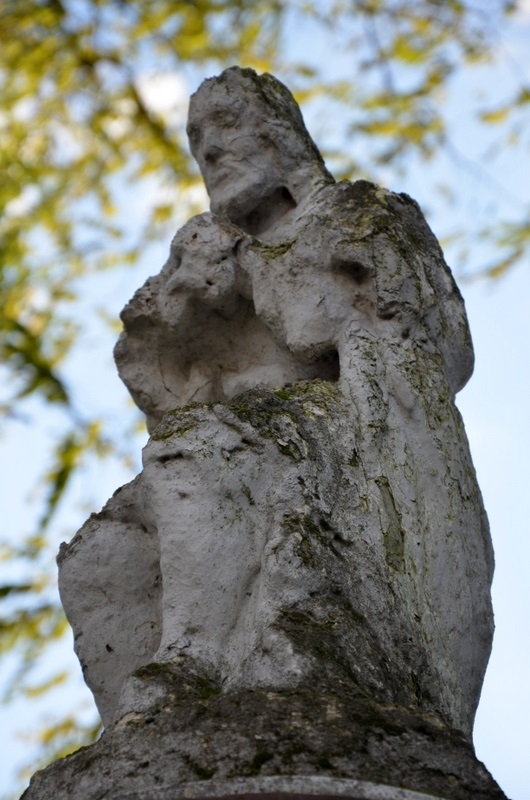 Przy parkingu, przed kościołem Michała Archanioła stoi masywna kolumna zwieńczona malutką kamienną rzeźbą. Rzeźba przedstawia siedzącą zamyśloną postać mężczyzny z głową opartą na złączonych dłoniach. Czyżby to była postać Chrystusa Frasobliwego?