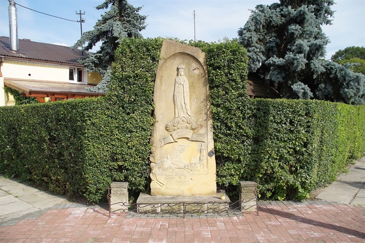 Przy zbiegu ulic Kilińskiego i Rzecznej znajduje się ładnie wkomponowana w ogrodzenie z żywopłotu płaskorzeźba ze stylizowaną postacią Maryi Królowej Polski. Na płaskorycie z piaskowca oprócz postaci Maryi znajduje się sentencja: " Udziel Pokoju Królowo Polski Dniom Naszym" oraz poniżej herb Uniejowa i panorama miasta: zamek, kolegiata. Znajdujący się na płycie rok 2003 wskazuje, że jest to płaskorzeźba współczesna. Całość jest ogrodzona niewielkim płotkiem i zadbana.