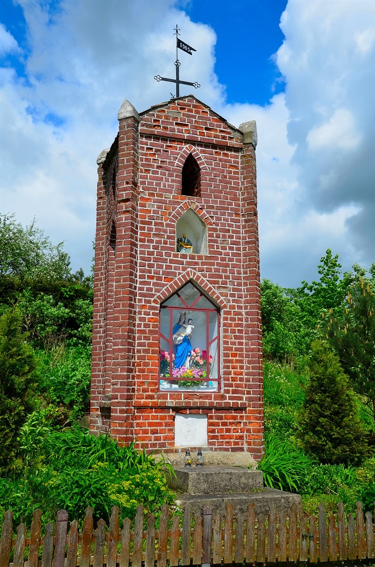 Kapliczka przy drodze w kierunku Orzechowa jest o wiele skromniejsza od poprzedniej, niewysoka ale wiele wskazuje na to, iż jej część jest po prostu pod ziemią. Jest ona murowana i otynkowana, trochę bezstylowa ale pomalowana na fantazyjne kolory przez właścicieli sąsiadującego z nią gospodarstwa.
