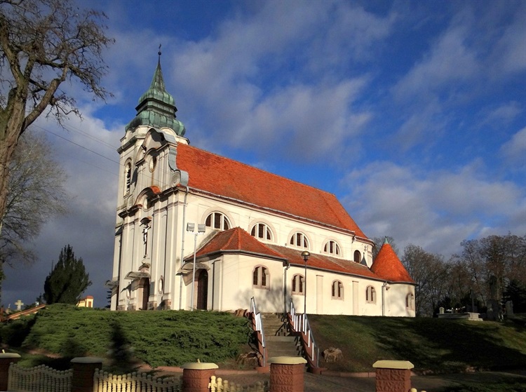 Kościół jest budowlą bardzo okazałą, orientowaną, trójnawową w stylu neobarokowym z wieżą po pólnocnej stronie. Usytuowany na wzgórzu i otoczony od wschodniej i południowej strony cmentarzem prezentuje się nadzwyczaj efektownie.