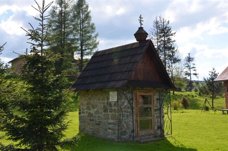 Kapliczka z rzeźbą Matki Boskiej z Dzieciątkiem stoi na prywatnej posesji w pobliżu cerkwi pod wezwaniem Opieki Najświętszej Bogurodzicy w Zdyni.