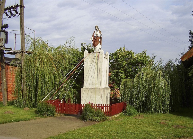 Tuż obok starej remizy OSP czynnej w latach 1927 -1997 stoi przydrożna figura Chrystusa.