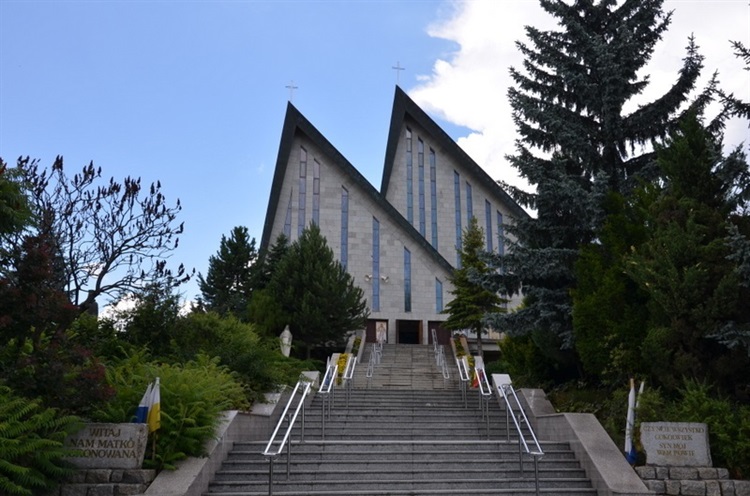Ciągle zwiększająca się liczba pielgrzymów skłoniła władze kościelne do budowy kościoła. Po długoletnich staraniach otrzymano zgodę na jego postawienie. Świątynia o powierzchni około 600 m2 została wzniesiona w latach 1973 – 1980 wg. projektu inż. arch. Zbigniewa Zjawienia z Krakowa. Świątynię tworzą dwie nawy układające się od frontu w literę "M" – znak, że jest to Sanktuarium Maryjne.