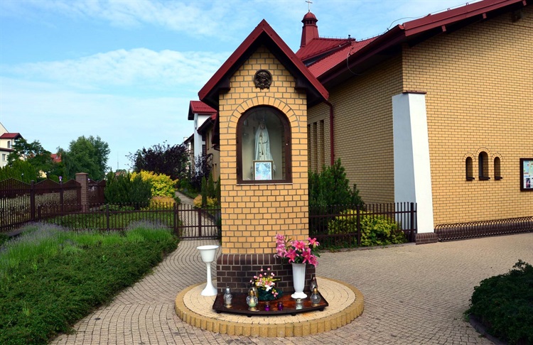 Prosta kapliczka słupowa znajdująca się przy ulicy Rybałtów na Ursynowie (Moczydło), przy kościele p.w. świętego Ojca Pio. Wybudowana z jasnej cegły klinkierowej, ustawiona na kolistej podstawie, nakryta dwuspadowym daszkiem. W niszy figura Matki Bożej Fatimskiej, przed którą obrazek z postacią Jana Pawła II. Nad wnęką okrągły medalion z wizerunkiem Chrystusa Ukrzyżowanego.