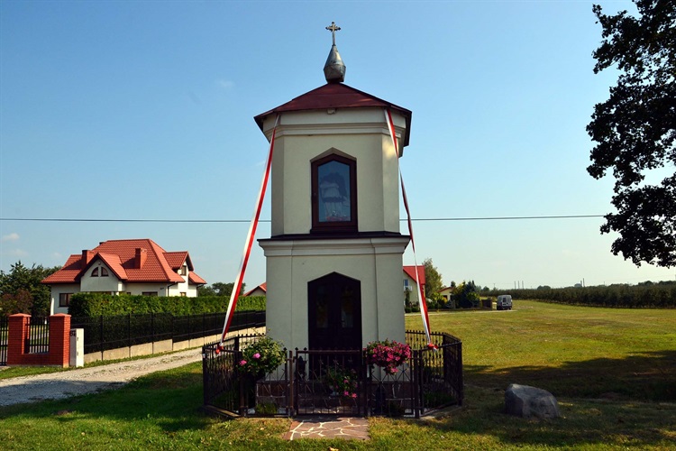Stojąca na wyjeździe z Dziecinowa w kierunku miejscowości gminnej Sobienie-Jeziory. Dwupiętrowa, wystawiona w 1864 roku, nakryta brogowym dachem pokrytym blachą i zwieńczonym żelaznym krucyfiksem bez pasyjki. Otoczona metalowym ogrodzeniem. We wnęce górnej, węższej kondygnacji, figura świętego Jana Nepomucena z jednym jego atrybutem: krzyżem trzymanym w prawej, zgiętej w łokciu ręce. Ręka lewa wyprostowana. W niszy dolnej kondygnacji zamkniętej drewnianymi, oszklonymi drzwiami m.in. obraz Matki Bożej Częstochowskiej z Dzieciątkiem Jezus oraz figurka Matki Bożej z Lourdes.