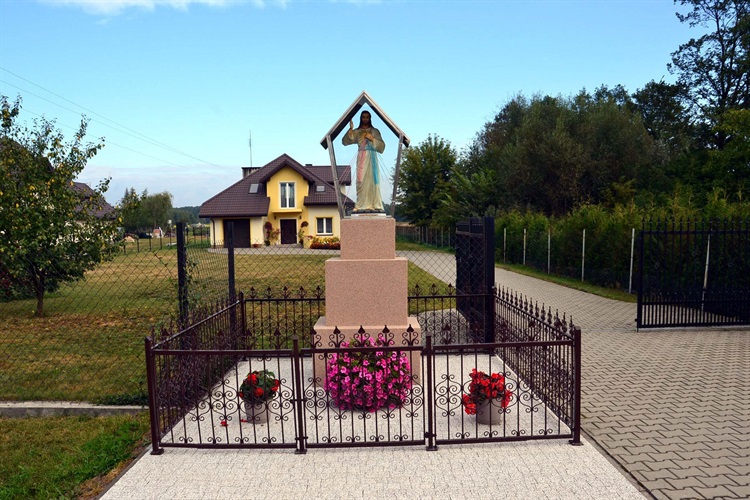 Krystyna to wieś w pobliżu Garwolina, położona w pobliżu wschodniego krańca malowniczych Lasów Garwolińskich. Figura znajduje się na wjeździe do wsi od strony Woli Rębkowskiej. Ustawiona została w oszklonej, zadaszonej gablocie, na trójstopniowym, rozszerzającym się ku dołowi postumencie. Otoczona metalowym ogrodzeniem.