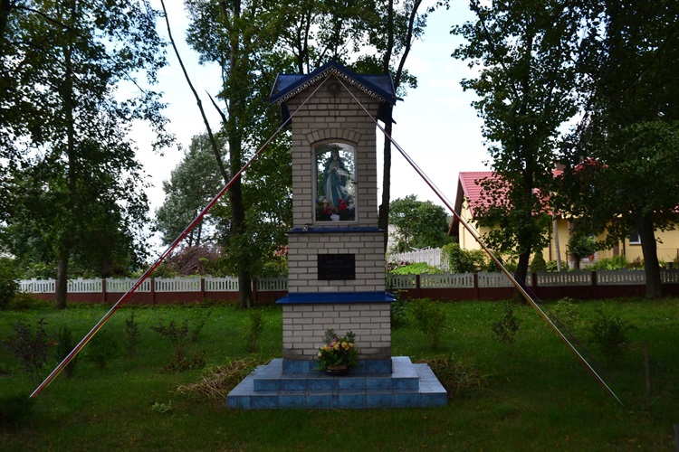 Pienice to jedna z większych wsi gminy Krasnosielc w powiecie makowskim, na północnym Mazowszu. Kapliczka stoi w jej centrum, na placu porośniętym trawą, otoczonym murem. Czteroczłonowa, ustawiona na schodkowej podstawie, z każdym z poziomów zwężających się ku górze. Poszczególne jej części (oprócz dwóch najwyższych) oddzielone są od siebie metalowym okapem pomalowanym na niebiesko. Wymurowana z białej cegły, nakryta łamanym dachem pokrytym blachą, bez krzyża. W otwartej na wszystkie strony wnęce figura matki Bożej z Lourdes. W drugim od dołu segmencie tabliczka z informacją: „MARIO POBŁOGOSŁAW NAM PIENICE 1957R.”