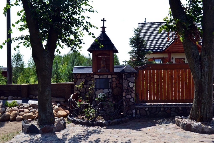 Wieś w gminie Krasnosielc w Powiecie Maków Mazowiecki. Kapliczka stojąca przed posesją jej fundatorów. Drewniano-murowana; na postumencie wymurowanym z kamieni polnych ustawiony jest drewniany domek otwarty na trzy strony, nakryty czterospadowym, stromym daszkiem wykonanym z listewek imitującymi strzechę i zwieńczonym kolumienką z drewnianym krzyżykiem z Pasyjką. W domku, spoglądająca na przechodniów smutnym wzrokiem, drewniana, ludowa figurka Chrystusa Frasobliwego. Pan Jezus z koroną cierniową na głowie, ubrany jest w długi płaszcz. Zmartwioną twarz trzyma na prawej ręce, lewą ma położoną na kolanach. Poniżej tabliczka z inskrypcją: „BOŻE BŁOGOSŁAW NAM 01.05.2011”.