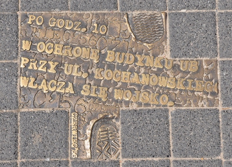 Z okazji 60 rocznicy Poznańskiego Czerwca'56 przed Zamkiem Cesarskim, w miejscu gdzie zebrał się tłum protestujących robotników umieszczono w chodniku kilkanaście brązowych tabliczek, które w postaci odciśniętych śladów butów krok po kroku relacjonują wydarzenia Poznańskiego Czerwca.