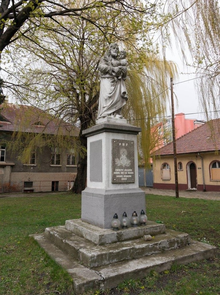 Rzeźba św. Józefa znajduje się w pobliżu wieży zamkowej. Figura świętego wieńczy dwustopniowy cokół posadowiony na kilkustopniowym podwyższeniu. Kamienna figura przedstawia św. Józefa trzymającego dzieciątko Jezus i przyciskającego prawą ręką do piersi lilię – symbol czystości i dziewictwa. Na przytwierdzonej do ściany cokołu płycie widnieje między innymi napis "ŚWIĘTY JÓZEFIE MÓDL SIĘ ZA NAMI / ANNO DOMINI 2000".