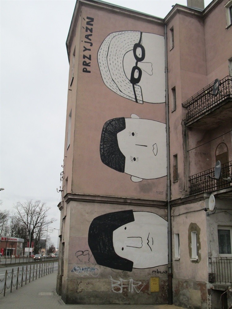 Mural „Przyjaźń” znajduje się na kamienicy przy Al. Jana Pawła II. Przedstawia trzy twarze spoglądające z góry budynku. Jego autorką jest pochodząca z Leszna Dagmara Angier – Sroka.