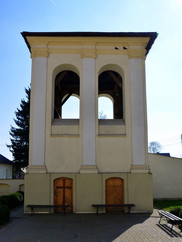 Murowana dzwonnica wzniesiona jest w obrębie muru kościoła pw. Narodzenia Najświętszej Marii Panny i św. Michała Archanioła. Została zbudowana na przełomie XVII/XVIII wieku. Dzwonnica jest obiektem murowanym na rzucie kwadratu, otynkowanym i nakrytym czterospadowym dachem. Na każdej ścianie posiada po dwa prostokątne otwory zwieńczonych łukiem. Ściany ozdobione są gzymsami oraz pilastrami.