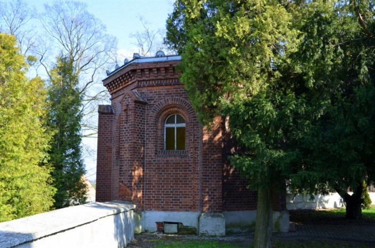 Kaplica grobowa rodziny Schmiedeberg została postawiona obok kościoła pw. NMP Królowej Polski. Wzniesiona została w 1870 roku. Kaplica jest obiektem murowanym z czerwonej cegły na rzucie wieloboku i przykrytym wielospadowym dachem. Okna oraz wejście do kaplicy zamknięte półokrągło.