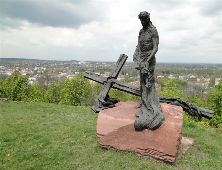 Naturalne ukształtowanie terenu wokół Bazyliki Narodzenia NMP w Chełmie skłaniało do postawienia na wzgórzu Drogi Krzyżowej. Pierwszą taką inicjatywę podjął ks. Jan Kubiak tuż przed wybuchem II wojny światowej. Rozpisano konkurs na projekt, ale w realizacji dzieła przeszkodziła wojna. Do pomysłu wrócił w 1954 r. ks. Biskup Piotr Kaława, który erygował Kalwarię Chełmską. Wtedy też w miejscach poszczególnych stacji postawiono drewniane krzyże, które przetrwały ponad 30 lat.