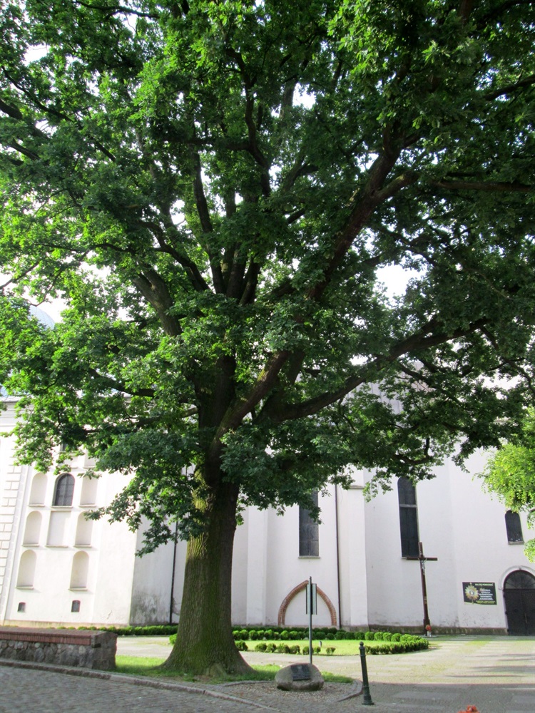 Przy barokowym kościele pobernardyńskim p.w. Najświętszego Imienia Jezus i Niepokalanego Poczęcia Najświętszej Maryi Panny rośnie dąb szypułkowy posiadający status Pomnika Przyrody. Jego wiek szacuje się na 195 lat. Obwód pnia w pierśnicy wynosi ponad 340 centymetrów. Przy drzewie znajduje się kamień z tablicą ufundowaną w 2009 roku.