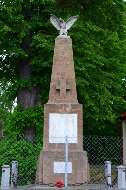 Pomnik poświęcony mieszkańcom miejscowości, którzy stracili życie walcząc na frontach I wojny światowej stoi obok wejścia do zabytkowego kościoła. Powstał w 1926 roku staraniem młodzieży wspieranej finansowo przez rodaków z Ameryki. Informacja ta umieszczona jest na tablicy umieszczonej na podstawie pomnika.