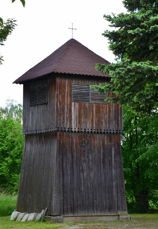 Dzwonnica zbudowana po 1945 roku stoi obok zabytkowego kościoła. Wzniesiona jest na planie kwadratu, jest drewniana, ściany ma lekko pochylone z nadwieszoną izbicą. Nakryta jest czterospadowym dachem zwieńczonym metalowym krzyżem. Wewnątrz trzy dzwony wykonane w zakładzie Emila Kozłowskiego z Wrocławia. Imiona dzwonów to: św. Józef, Ave Maria i Stanisław.
