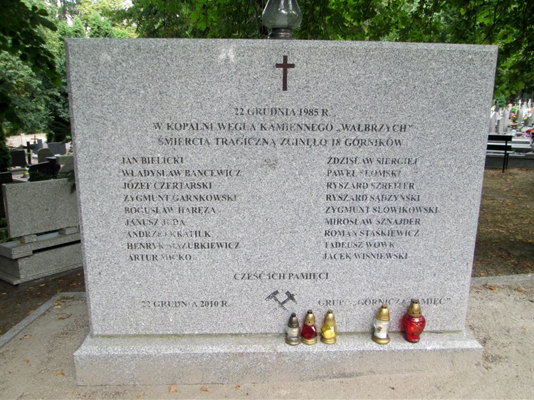 W Wałbrzychu na Cmentarzu Komunalnym „Śródmieście” znajduje się pomnik upamiętniający osiemnastu górników, którzy zginęli tragicznie dnia 22 grudnia 1981 roku w Kopalni Węgla Kamiennego „Wałbrzych”. Pomnik ufundowany został 22 grudnia 2010 roku.