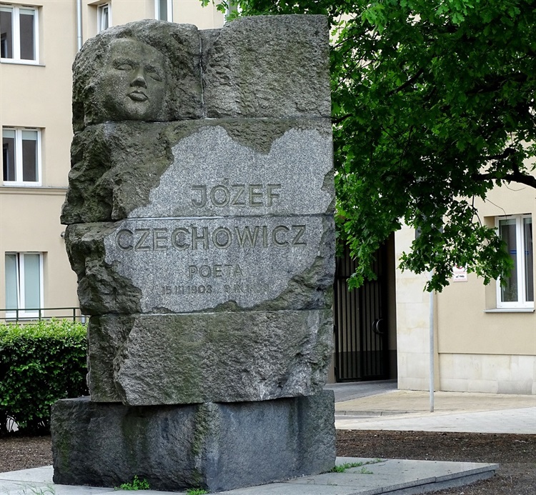 9 września 1969 r. - dokładnie w 30 rocznicę śmierci – w miejscu, w którym pogrzebały go gruzy kamienicy (dzisiaj Plac Czechowicza, wtedy – Krakowskie Przedmieście 46) odsłonięto pomnik Józefa Czechowicza. Ma bardzo prostą a jednocześnie symboliczną formę, odnoszącą się do tragicznej śmierci poety. Tworzy go „strzaskana masa kamieni” w formie kilku nieforemnych, granitowych bloków wznoszących się na wysokość 3,5 m. W jednym z górnych krańców bryły wyrzeźbiono twarz „piewcy Lublina”. Poniżej na jedynym płaskim fragmencie powierzchni wykuto skromny napis „JÓZEF / CZECHOWICZ / POETA / 15 III 1903 9 IX 1939”. Autorem pomnika jest najlepszy lubelski rzeźbiarz lat 70. Tadeusz Skwarczyński.