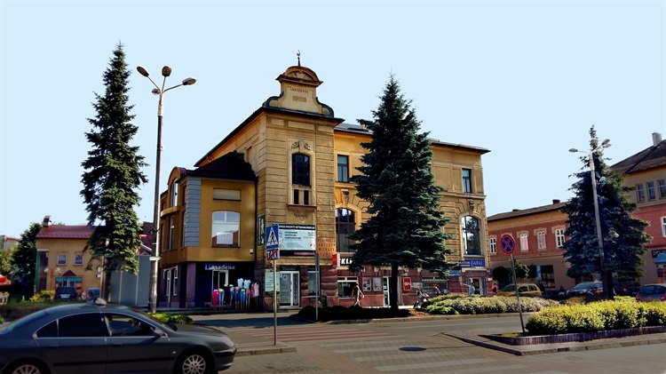 Budynek powstał w 1891 na zlecenie Josefa Blocha który prowadził tam restaurację. Jednak w 1896 kamienica została kupiona przez Aloisa Gebauera z Moraw który stworzył tam Hotel. w 1899 utworzono kantor wymiany walut, następnie małą salę kinową. W tym miejscu do czasu zbudowania kościoła ewangelicko-augsburskiego odbywały się nabożeństwa. W 1905 dobudowano do wcześniejszej części (różowej) nowszą (żółtą część) na przeciwko Dworca kolejowego