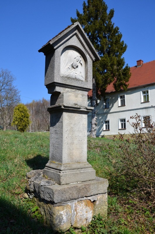 Kapliczka Matki Boskiej znajduje się w ogrodzie plebani po prawej stronie schodów prowadzących do kościoła św. Wita. Pierwotnie w miejscu tym do połowy XX wieku znajdowała się kompozycja przedstawiająca modlitwę Pana Jezusa w Ogrodzie Oliwnym, w otoczeniu śpiących apostołów. Obecnie z kompozycji tej pozostał jedynie kamienny postument z wyrytymi na ścianach inskrypcjami w języku niemieckim. Na postumencie tym stał kielich, przed którym modlił się Pan Jezus - Abba, Ojcze, dla Ciebie wszystko jest możliwe, zabierz ten kielich ode mnie! Lecz nie to, co ja chcę, ale to, co Ty. Jest to po przetłumaczeniu fragment modlitwy wyryty na ścianie frontowej postumentu. Na postumencie zamiast kielicha posadowiona jest kamienna kapliczka nakryta dwuspadowym daszkiem. W płycinie znajduje się płaskorzeźba popiersia Matki Boskiej. Kapliczka ta przeniesiona została prawdopodobnie z pobliskiego cmentarza ze starego nagrobka.