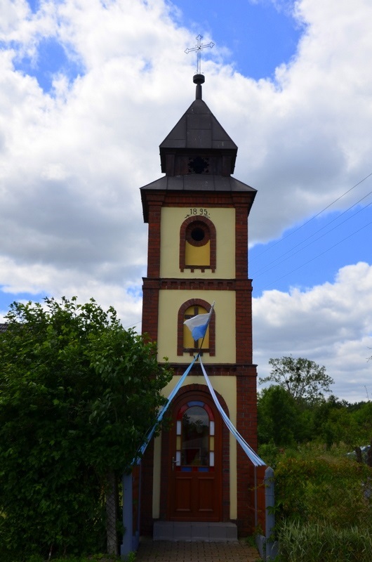 Zbudowana jest na rzucie prostokąta, jest murowana, czterokondygnacyjna i otynkowana. Poszczególne kondygnacje oddzielone są gzymsami z czerwonej cegły. Krawędzie ścian również zakończone czerwona cegłą. Kapliczka zwieńczona jest drewnianą kopułą nakrytą czterospadowym dachem z metalowym ażurowym krzyżem na jego szczycie. Na poszczególnych kondygnacjach wykonane są duże wnęki zamknięte łukiem i ozdobione czerwoną cegłą. Wejście do kapliczki zakończone łukiem zabezpieczone są drewnianymi przeszklonymi drzwiami, nad którymi we wnęce na drugiej kondygnacji zawieszony jest duży drewniany krzyż z figurą ukrzyżowanego Chrystusa. Wewnątrz na przyściennym ołtarzyku umieszczona jest figurka św. Józefa z dzieciątkiem i lilią.