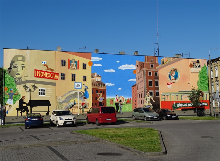 Jest królowa Jadwiga i słynna teściowa , są wiewiórki i inowrocławska bimba, jest paw i średniowieczny kościółek Imienia Najświętszej Marii Panny , są elementy nawiązujące do sąsiedztwa szkoły muzycznej i teatru oraz sporo innych, nie zawsze łatwych do zidentyfikowania (zwłaszcza przez turystów). Rozpoznawanie ich może być dobrą zabawą nie tylko dla przyjezdnych ale także dla mieszkańców miasta. Szkoda tylko, że na muralu zabrakło tężni solankowej. A może to tylko ja nie potrafiłam jej znaleźć?