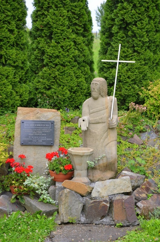 Na skalniaku umiejscowionym nad ulicą Floriana stoi wykonana z kamienia piaskowego rzeźba. Jest to współczesna, ludowa figura św. Jana Chrzciciela. Obok figury postawiona jest kamienna pyta z przytwierdzoną tablicą fundacyjną o treści "ŚW. JAN CHRZCICIEL – ZA WSZELKIE ŁASKI BOŻEI OPIEKĘ MARYI DZIĘKCZYNNE TEDEUM LAUDAMUS składa rodzina Jolanty i Zbigniewa Dufrat. W 50 ROCZNICĘ POWSTANIA PARAFII ODRZECHOWA 1958 – 2008".