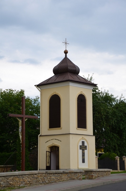 Jest to obiekt zbudowany na planie kwadratu, dwukondygnacyjny, murowany, otynkowany i nakryty czterospadowym dachem zwieńczonym cebulastym hełmem z krzyżem. Pierwsza kondygnacja posiada w ścianie bocznej płycinę z krzyżem, na którym umieszczony jest napis z nazwą parafii i godzinami mszy. Od frontu znajduje się wejście do kapliczki poświęconej Matce Odkupiciela.