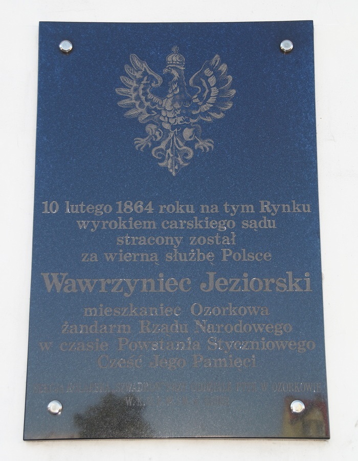 Na fasadzie domu pochodzącego z końca XIX w. stojącego przy Placu Jana Pawła II (dawniej Stary Rynek; plac podarował w 1654 r. Jan Szymon Szczawiński) pod nr 17 znajduje się tablica upamiętniająca postać Wawrzyńca Jeziorskiego.
