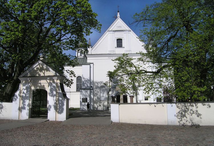 W latach 1522-25 w tym miejscu został wybudowany pierwszy drewniany kościół ufundowany przez Jerzego Iwanowicza Ilinicza. W 1525 r. została erygowana parafia pw. N.P. Marii i św. Jadwigi. Następnie w połowie XVI kościół został przemianowany na zbór kalwiński przez proboszcza - konwertytę Hieronima Piekarskiego. Około 1550 roku uległ pożarowi, następnie odbudowany w 1572 r. jako murowany zbór ariański. W 1590 r. ponownie erygowano parafię i postanowiono wznieść nowy kościół z wykorzystaniem murów zboru.