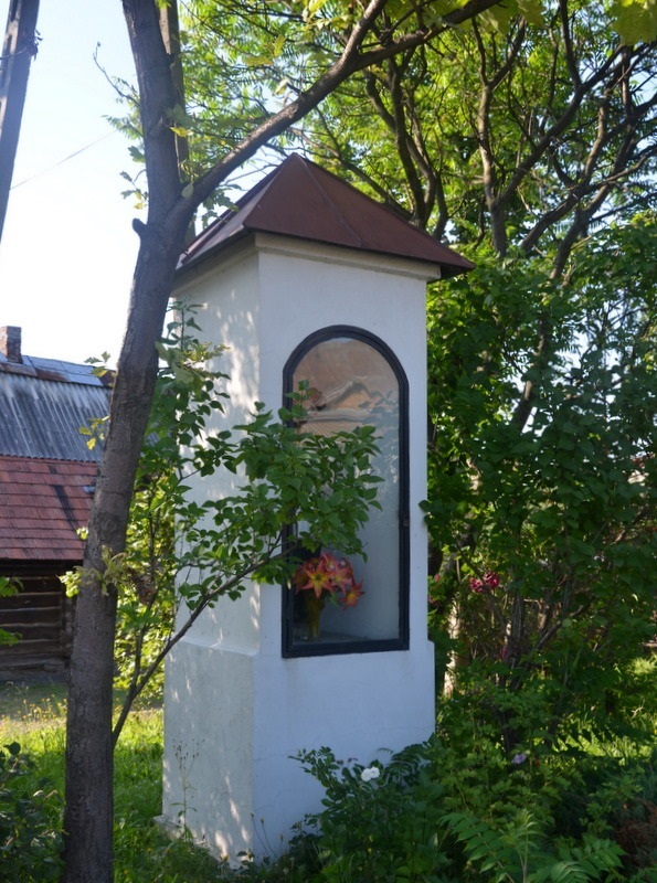 Kapliczka św. Jana Nepomucena stoi na skraju głównej drogi prowadzącej przez wieś. Kapliczka słupowa wzniesiona jest na planie kwadratu, murowana, otynkowana i nakryta czterospadowym daszkiem. W ścianie frontowej wykonana jest duża, półokrągło zakończona i przeszklona wnęka. Wewnątrz umieszczona jest ludowa figura św. Jana Nepomucena z przechyloną głową nakrytą biretem i uniesionymi, rozłożonymi rękami.
