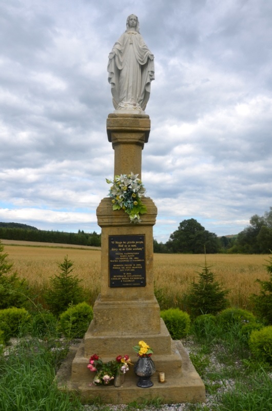 Figura Najświętszej Maryi Panny stoi na poboczu, po lewej stronie drogi prowadzącej z Nagórzan do Bukowiska. Rzeźba wieńczy głowicę ośmiobocznej kolumny stojącej na wielowarstwowym gzymsie cokołu posadowionego na kilkustopniowej podstawie. Z tablicy przytwierdzonej do cokołu dowiadujemy się, że ufundował około 1886 roku Maciej Jazowski z Nagórzan, remont figury w 1999 roku przeprowadził jego prawnuk Jan Cypcarz, a w 2915 r. renowację sfinansował Czesław Drozd z Nagórzan. Wieńcząca postument biała figura Najświętszej Maryi Panny stoi na kuli ziemskiej z gwiazdami i półksiężycu depcząc piekielnego węża.