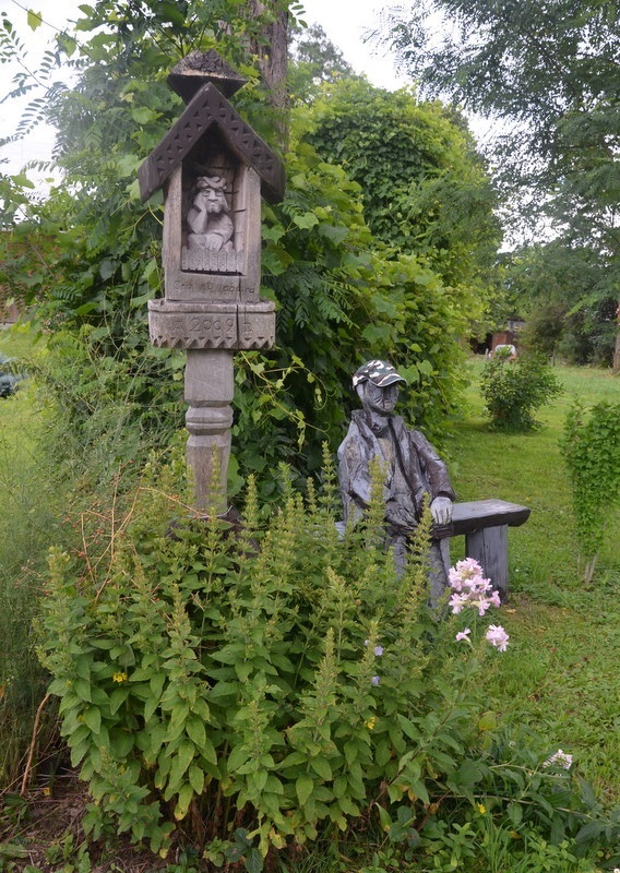 Kapliczka usytuowana jest nieopodal Uniwersytetu Ludowego w Sękowej Woli. Jest to ludowa kapliczka wykonana z drewna i z drewnianą figurką Chrystusa Frasobliwego umieszczoną w jej wnętrzu. Kapliczka umieszczona jest na drewnianym ozdobnym słupie. Poniżej figurki wyryty jest napis "Ora et Labora" (Módl się i pracuj) oraz data – 2002 rok. Obok kapliczki znajduje się ławeczka z drewnianą rzeźbą mężczyzny gdzie można usiąść na chwilę refleksji.