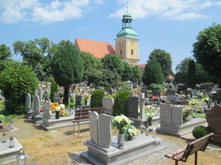 Zwiedzając barokowy kościół p.w. św. Jadwigi warto pospacerować po cmentarzu parafialnym znajdującym się przy świątyni. Oprócz współczesnych nagrobków znajdują się tam mogiły odległe naszym czasom. Warto zwrócić uwagę na krzyż oraz głaz pamiątkowy umieszczony w 2009 roku z napisem "Pamięci spoczywających od wieków na tym cmentarzu i wszystkich, których nosimy w sercach naszych". Tuż przy nim znajduje się grobowiec z rzeźbą opłakującej niewiasty oraz marmurową ławką.