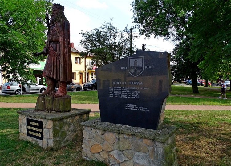 W jednym z narożników zadrzewionego Placu Partyzantów znajdującego się na środku lelowskiego Rynku stoi drewniana figura Kazimierza Wielkiego. Na wykonanym z obmurowanych, wapiennych kamieni cokole umocowano tabliczkę, na której czytamy: „KAZIMIERZ III WIELKI/KRÓL POLSKI 1333-1370 DOBRODZIEJ/KRÓLEWSKIEGO GRODU LELÓW”.