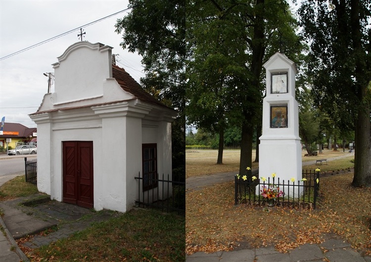 Pierwsza z nich znajduje się przy zbiegu w/w ulicy z ul. Grunwaldzką. Została wzniesiona w poł. XVIII w., w stylu domkowym, murowana, otynkowana, zwieńczona niewielkim krzyżem. Wewnątrz znajduje się postać św. Jana Nepomucena (informacja od napotkanego mieszkańca).