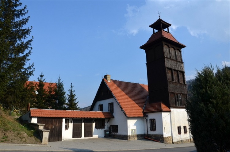 Wzniesiony jest na planie prostokąta, murowany, jednokondygnacyjny z użytkowym poddaszem i dobudowaną z boku drewnianą wieżą służącą w przeszłości do ćwiczeń i obserwacji miasta i okolicy. Nad dwoma wjazdami do garaży, w przeszklonej kapliczce umieszczona jest współczesna figurka patrona strażaków świętego Floriana (pierwotnie w miejscu kapliczki znajdował się znak strażacki - strażacki z dwoma skrzyżowanymi toporkami).