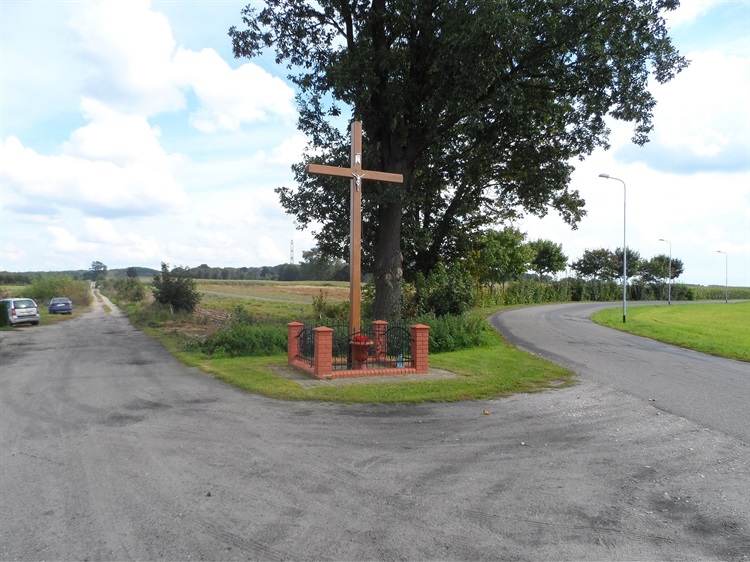 Równopole, wieś w powiecie pilskim w gminie Kaczory. Na rozstaju dróg stoi drewniany krzyż.