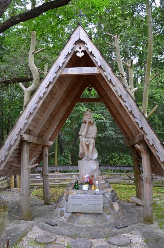 Rzeźba nakryta jest dwuspadowym dachem wspartym na czterech ściętych pniach ze sterczącymi kikutami konarów. Kaplica upamiętnia ks. Tadeusza Cabałę, proboszcza z parafii św. Andrzeja Boboli w Sopocie oraz sopockiego architekta Brunona Wandtke. Kapliczkę poświęcił w dn. 8.11.2011 r. arcybiskup Sławoj Leszek Głódź.