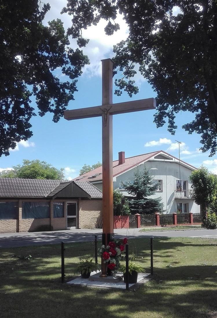 Przy drodze łączącej Śmiłowo z Chodzieżą w centrum Kaczor stoi drewniany krzyż.